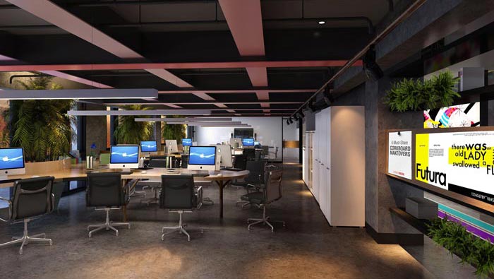 辦公區(qū)域的設(shè)計(jì),設(shè)計(jì)師在設(shè)計(jì)的時(shí)候,對(duì)空間進(jìn)行了工業(yè)風(fēng)的轉(zhuǎn)化,設(shè)計(jì)師認(rèn)為呆板的空間會(huì)使人喪失思考的能力與激情,設(shè)計(jì)師希望這樣的空間可以調(diào)動(dòng)員工的心態(tài),讓大家在愉悅的工作環(huán)境之中完成自身與企業(yè)的雙重成長。