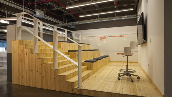 匯報區域、交流區域、會議區域的設計:此處空間充分采用“融合”的設計手法,在設計師看來空間設計在于有效的把握空間與企業之間的關系,一來這樣的設計可以極大的節約成本,另外這樣的設計可以為企業營造一個有別于其他的空間的設計,向心力是此處對于企業最重要的一個元素。