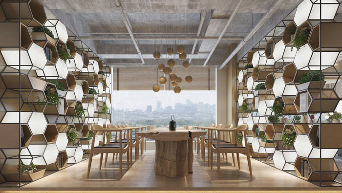 辦公區(qū)域的設(shè)計(jì):設(shè)計(jì)師在設(shè)計(jì)的時(shí)候,由于是開放式的辦公空間,故此設(shè)計(jì)師在設(shè)計(jì)的時(shí)候,采用地標(biāo)來劃分每個(gè)區(qū)域的勢(shì)力范圍,由此企業(yè)內(nèi)部的各部門得以劃分,一個(gè)小小的創(chuàng)意一來為裝修節(jié)約了成本,另一方面為辦公空間預(yù)留了足夠的活動(dòng)空間。