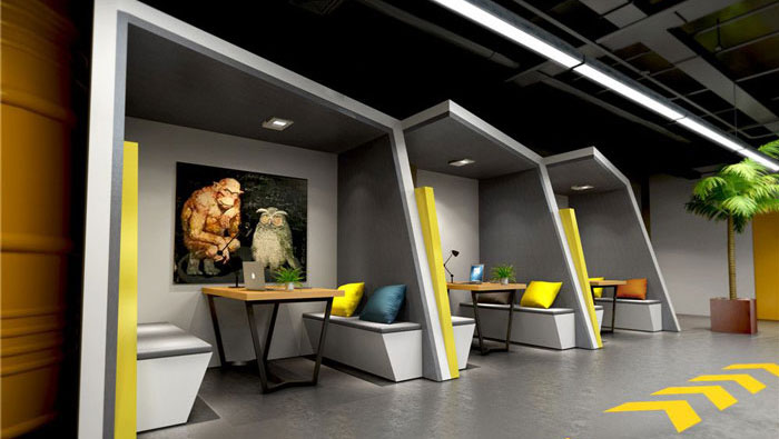 洽談區域的設計,設計師在設計的時候,在過道區域將剩余空間開發為3個洽談區域,一則使的空間實際使用實現最大化,二則使的各個空間之間更加協調。