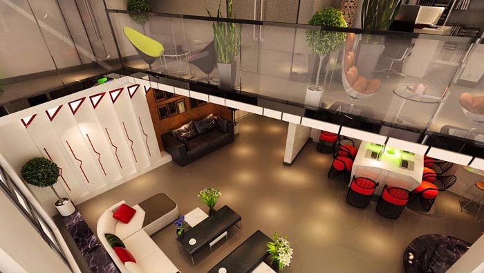 二樓區域的設計,設計師在設計的時候,二樓外圍主要以動線為主,在總經理辦公室的外部,設計師將洽談區域設置在此處,為總經理的洽談提供方便,這樣的設計既滿足了工作需要,在同時又滿足了空間設計的需求。
