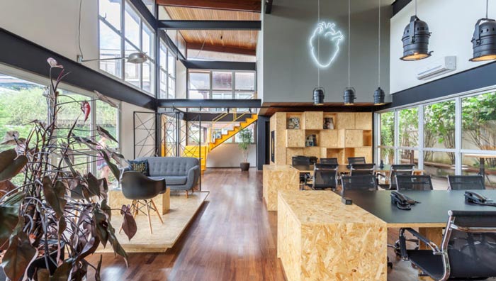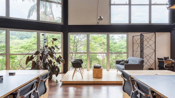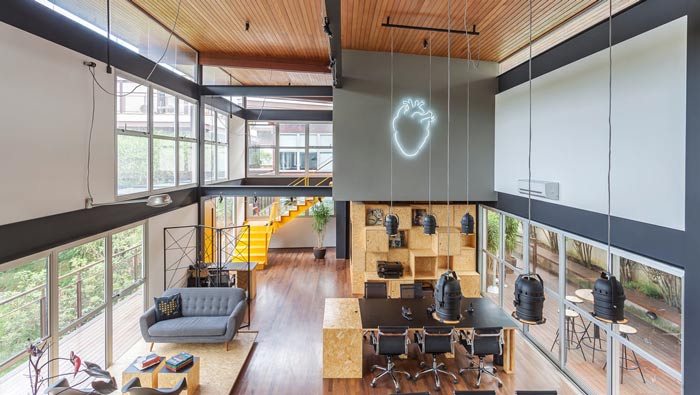loft風格辦公室設計:當我們坐在空間中的時候,可以清楚的看到外界的風景,這也是設計師設計的一部分,設計師希望通過這樣的設計模式,保持室內的活力,讓勞逸結合融入到工作中去。