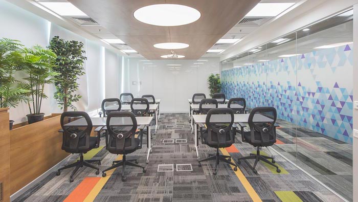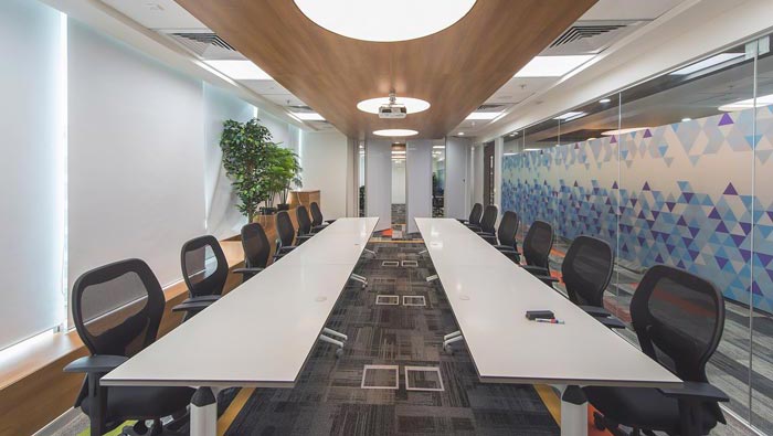 匯報區(qū)域的設(shè)計:設(shè)計師在設(shè)計的時候,將其設(shè)計為類似教室的布局,在設(shè)計師看來教室是講學(xué)與求教的雙重融合布局,這樣的布局在此處被完美嵌入,企業(yè)與客戶就相當(dāng)于兩個不同的群體,一方為要求者、一方為解決著,這樣的布局利于雙方之間的彼此互動。