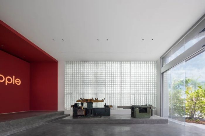 設(shè)計(jì)師注重建筑與環(huán)境的和諧共生,通過對(duì)原入口的功能優(yōu)化、文化大廳的內(nèi)部重塑、以及5F體驗(yàn)館的創(chuàng)新設(shè)計(jì),展現(xiàn)了紅蘋果品牌的文化傳承與未來愿景。其中,5F體驗(yàn)館以其獨(dú)特的“空器合一”概念為核心,通過簡(jiǎn)潔而有力的設(shè)計(jì)語言,傳達(dá)了人、空間與物品之間的和諧統(tǒng)一。