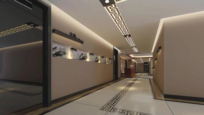 過(guò)道的設(shè)計(jì):在過(guò)道的設(shè)計(jì)中,設(shè)計(jì)師堅(jiān)持便捷的設(shè)計(jì)原則,設(shè)計(jì)師采用頂、地條紋相結(jié)合的方式,為客戶(hù)起到指引的作用,此處的設(shè)計(jì)原則十分明顯,就是便捷與導(dǎo)引,設(shè)計(jì)師希望在設(shè)計(jì)中融入導(dǎo)引的元素,讓客戶(hù)不至于迷路,同時(shí)導(dǎo)引線(xiàn)也會(huì)讓客戶(hù)感受到企業(yè)的細(xì)心與善意。