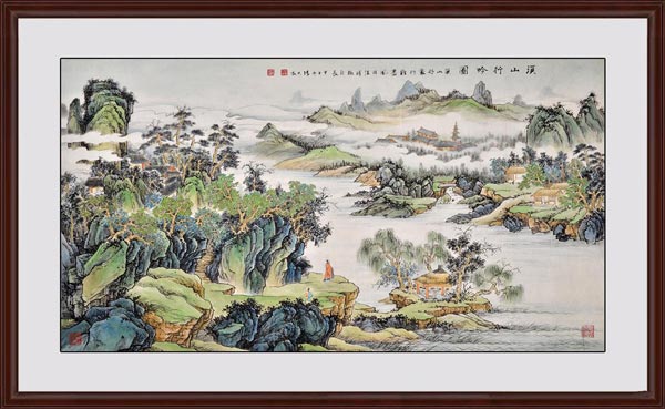1:此畫描繪了崇山峻嶺,從山下到山上,崗嶺相連,錯(cuò)落有致,景色近、中、遠(yuǎn)次第展開,整個(gè)畫面顯得寧靜而優(yōu)美;