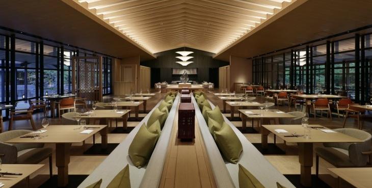 位于日本京都北部的Roku Kyoto度假酒店,由泰國曼谷的設(shè)計事務(wù)所Blink設(shè)計。當(dāng)?shù)厣瞥龉そ常毡颈容^有聲譽的寺廟大多集聚于此,匠人精神和宗教元素賦予了酒店獨特的魅力。林立的纖細柱網(wǎng)結(jié)構(gòu),其設(shè)計靈感來自于風(fēng)中搖曳的竹子,生動場景的建立,使住客與自然產(chǎn)生親密的聯(lián)系。