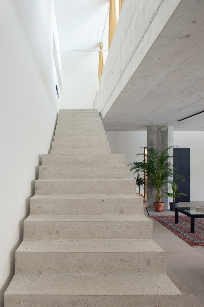 新的混凝土面板結構可以使建筑物的表面翻一番,得到一層新的地板.屋面朝北的天窗和主前朝南的玻璃窗都有直接的自然光。