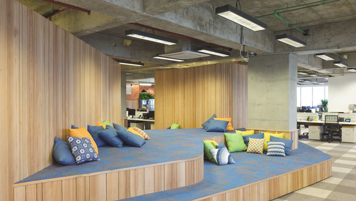 零售辦公室休息區設計:設計師在設計的時候,考慮到企業員工眾多,若是按照一般的休息區域進行設計,不但會造成空間的浪費、也無法滿足全部的需求,設計師采用娛樂的設計原則進行設計,而且此地材質也是可替換的、可洗的,保證了空間的干凈與潔凈。