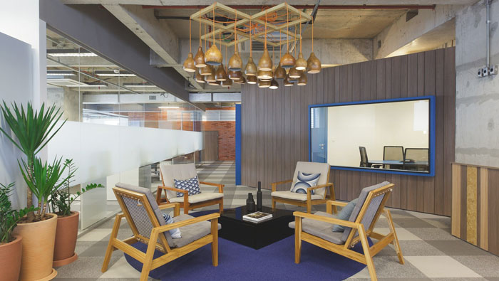 零售辦公室辦公交流區設計:設計師在設計的時候,將其安置在辦公空間的邊緣區域,在設計師看來這樣的設計可以造成空間的多樣性,讓相互之前可以相互配套,企業與客戶可在此地進行交流,促進相互之間的關系,另外員工與員工之間也可以在此地進行交流,此處彼此之間的關系。