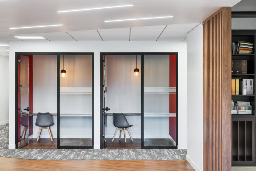 解放開放辦公工作站區域的周邊,同時在更封閉的建筑上實現玻璃正面,沒有留下任何一個角落。一個值得注意的特點是,從空間的核心到辦公區域,以對比地毯作為伴奏,以慶祝視覺興趣。