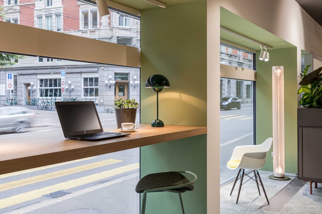 現(xiàn)代的工作環(huán)境不僅為員工提供了各種工作選擇,而且還以各種各樣的工作場(chǎng)所設(shè)計(jì)啟發(fā)了呂格-納格利的客戶。無(wú)論是餐廳、休息室還是會(huì)議室,蘇黎世中部的陳列室都展示了現(xiàn)代辦公理念的各種實(shí)施方式。