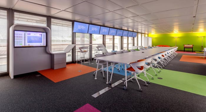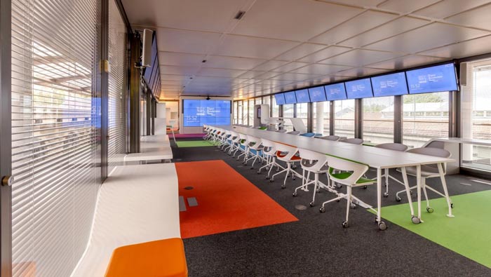 環(huán)境監(jiān)測公司辦公室顯示器設(shè)計(jì):辦公空間中的顯示器,可以做到上下左右輕微的移動,而每一個(gè)顯示器所對應(yīng)的都是不同的區(qū)域,的目就是讓空間完全沒有死角,讓員工時(shí)時(shí)刻刻、隨時(shí)隨地可以檢測到數(shù)據(jù)。