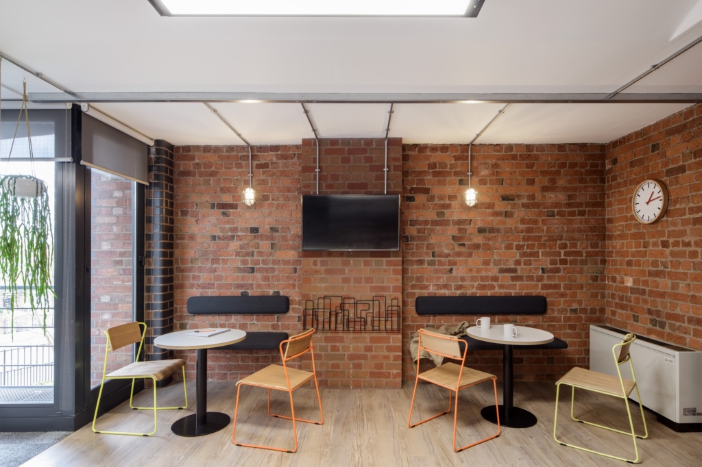 背景墻采用了樸素的磚塊來砌筑,從裸露紅磚到谷物提升機。我們的簡介是融入現代和豐富多彩的美學,同時工作與歷史建筑的建筑和它的地方文化。瞬間帶人回到了鄉村氣息的感覺,幾個金屬置物架放上一些植物帶來大自然的泥土芬芳,仿佛讓人置身于大自然之中讓人心曠神怡,綠色本身就是放松眼睛的保護色,作為長期使用電腦的同事們是非常不錯的裝飾。