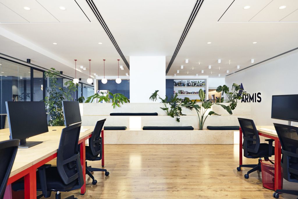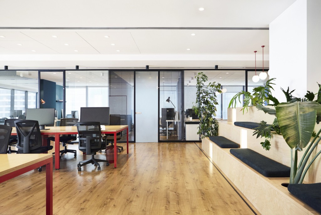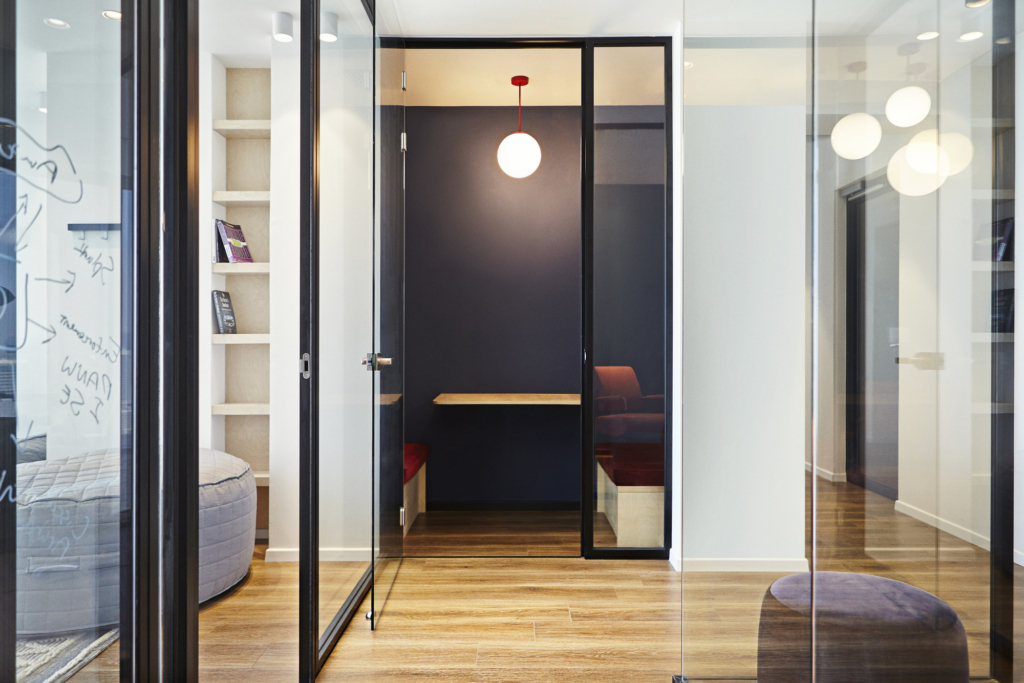 在開放空間的中心是一個多用途的輕木元素,與綜合照明-酒吧和接待處,設計為現代解釋一個圓形劇場。增加的植物旨在促進和增進健康。工作室的墻壁涂上了煙熏的顏色,受到公司標志的啟發,并逐漸從一個房間變成另一個房間。