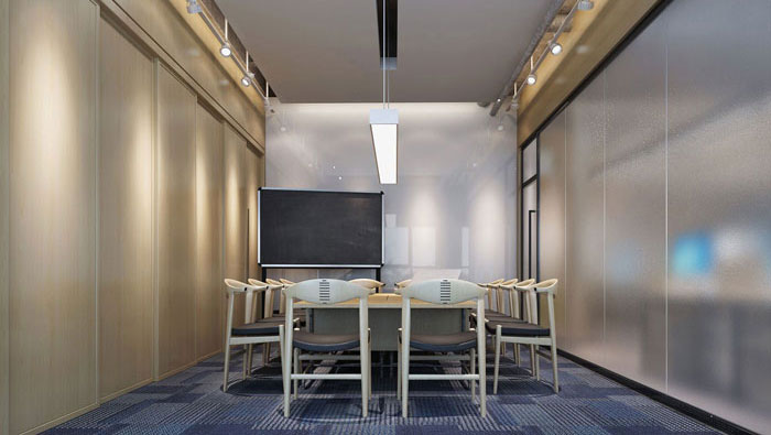 會議區辦公室的設計,設計師將光效弄得特別亮,很有潮氣活力,很有層次感,有由淺至深地了解一個品牌的寓意。